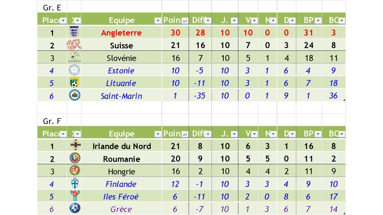 Euro 2020 Le Classement Des Groupes Eliminatoires Et Les Qualifies Actuels J2